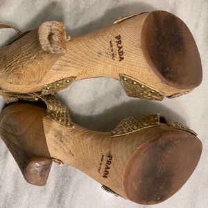 Prada Gold Python Studded Wood Sandal EURO Size 39 or US 8