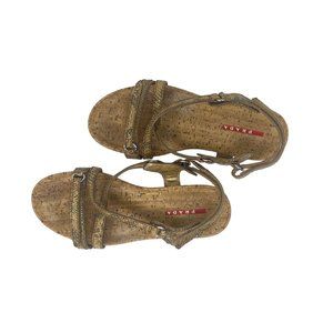 Prada Gold & Tan Reptile Leather Cork Sandals