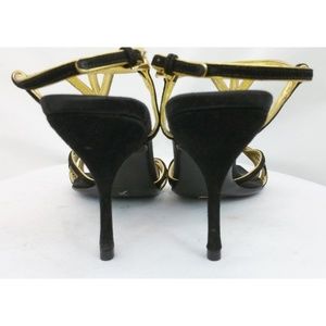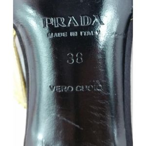 Prada Gold Trim Black Suede Heels 38 Sandals