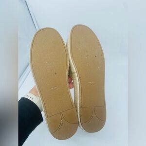 Prada Gold leather logo embroidered accent slide espadrille sandal EU 39