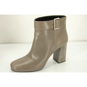 Prada Gray Leather Block Heel Ankle Boots Size 39 NIB $950 Italy Women's SqrToe