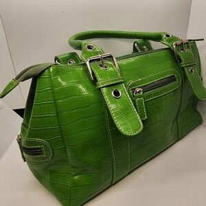 Elevate your style with this stunning Prada bag. Featuring a vibrant green crocodile-embossed design, this bag is perfect for any occasion. The luxurious texture and bold color make it a standout accessory. Straps & Buckles the Prada way set off any style. 3 outside pockets & Prada signature label plackard will get this bag noticed. 1 slight scuff on bottom corner (see pics). All strap seals are perfect, edging is perfect NWOT but price boutique tag is included.