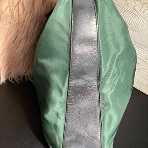 Elegant Prada tote in rich green. Features sturdy black strap. Perfect for everyday use.13-1/2” long, 4” wide, 11” tall