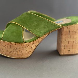 Prada Green Suede X-Band Platform Slides with Gold Piping