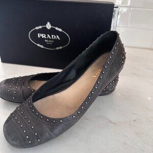 Prada Grey Ballet Flats – Studded Detail – Size 8.5