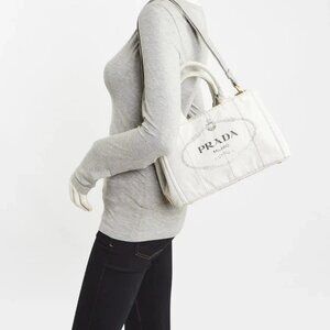 Prada Grey Canapa Canvas Small Tote Bag BG439