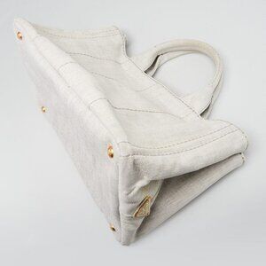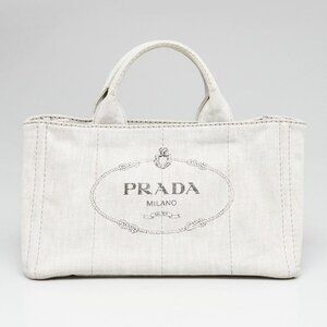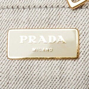 Prada Grey Canapa Denim Logo-Print Medium Tote Bag