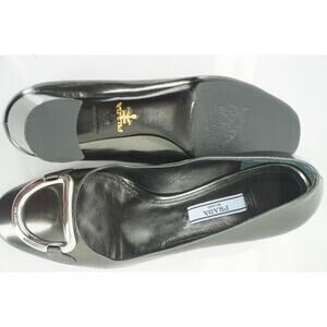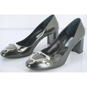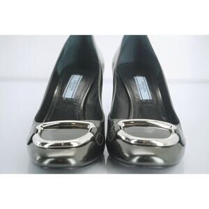Prada Grey Patent D Ring Buckle High Heels Pumps