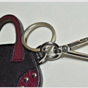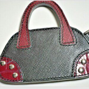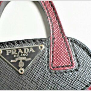 Very cute black & red leather Prada handbag charm/ key chain with silver details on both sides.