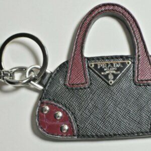 Prada HandBag Charm, Key Ring, Purse Fob. Leather & Silver, Never Used
