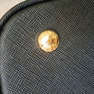 This is black Prada handbag. very lightly used price adjusted for that. only flaws awe in pictures. and is only the bottom metal pieces. as shown.