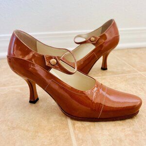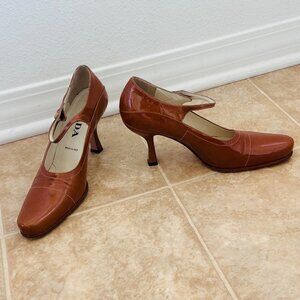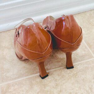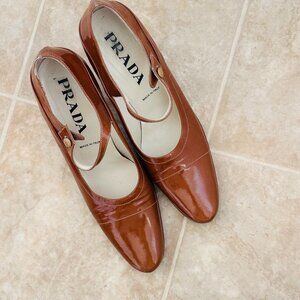 Prada Heel Semi Pointed Toe Patent Leather Italy 36 US6 Tan Brown Strap