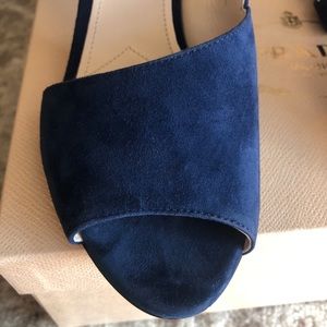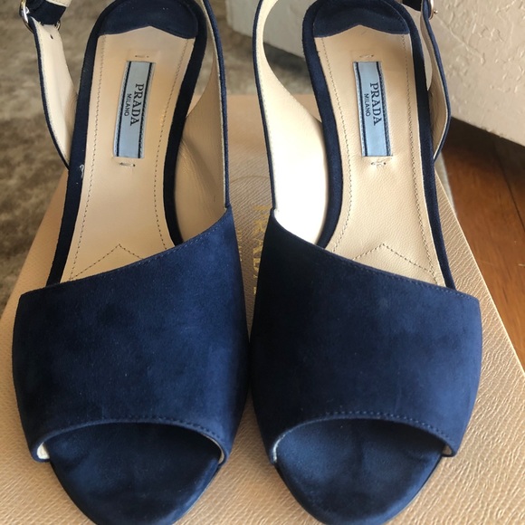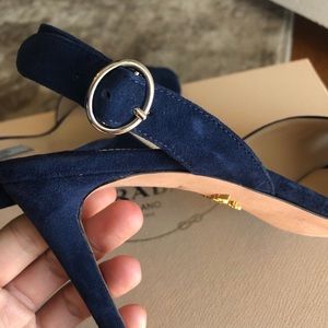 Super cute vintage Prada heels. Dark blue, felt strappy heels in size 37. In good condition with wear to the bottoms. Let me know if you have any questions!