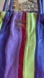 Bold and colorful Prada shoulder bag. Features striking stripes in purple, red, and green. Perfect for a stylish statement.