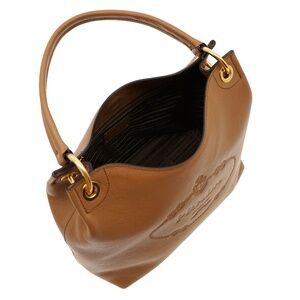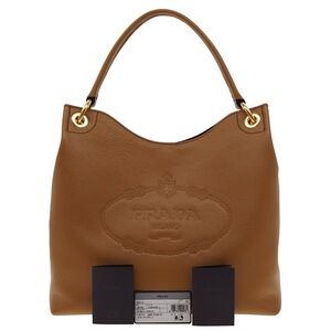 Prada Hobo Shoulder Bag Embossed Logo Caramel Leather 1BC051 New