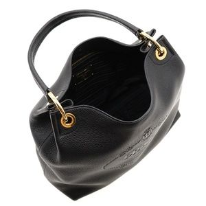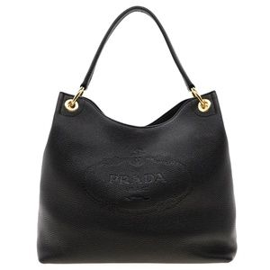 Prada Hobo Shoulder Bag Embossed Logo Vitello Phenix Black Leather New