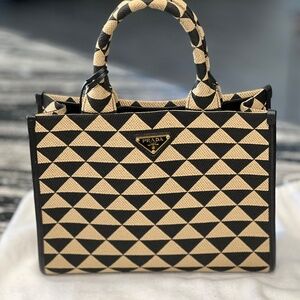 Prada Jacquard Saffiano Triangolo Symbole Embroidered Galleria Double Zip