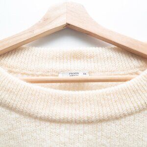 A great staple to have in your closet this coming fall and winter seasons. This is a knitted style sweater as shown in the photos. No apparent Prada logo on the outside but feels luxurious nonetheless.