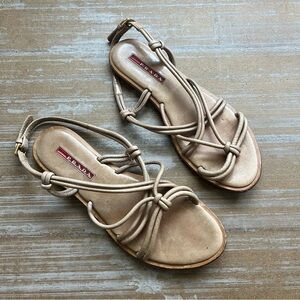 Prada Knotted Leather Sandals Boho Gladiator Preppy Casual Tan Western Womens 6