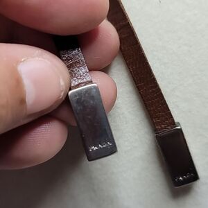 Elegant Prada necklace featuring a beautiful floral design on a gorgeous leather adjustable strap. Perfect for adding a touch of sophistication to any outfit.