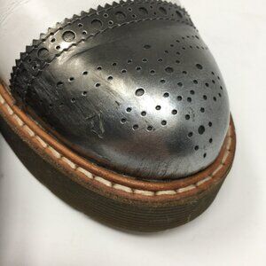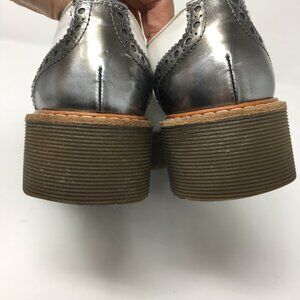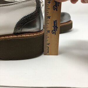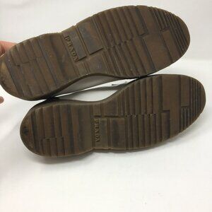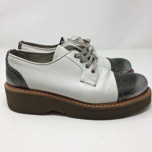 Prada Lace Up Platform Leather Brogue Shoes White leather Silver Toe Womens 39