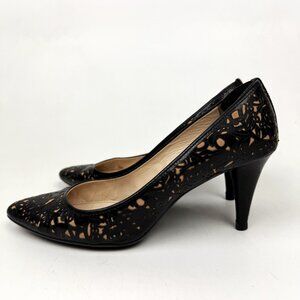 Prada Laser Cut Patent Leather Pumps Black & Tan Size 38.5