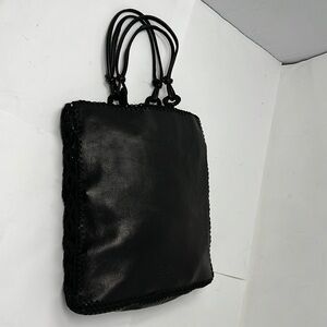 Not lined. Bag can also be reversed to wear as a suede. 10.5” x 8.5” x 2” with 7” double leather handles. No odors. No stains. No tears. Made in Italy.