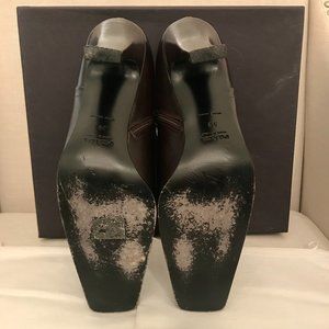 Dark brown leather 3.75" Prada ankle boots with square toe. Very light creasing on the front toe & minor scratches on the heel. In great condition. Includes original box & dust bags.