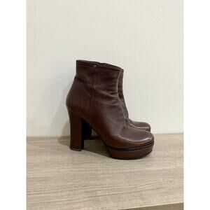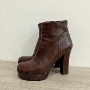 Prada Leather Block Heel Pull On Platform Ankle Booties Brown Women's Size EU 38.5