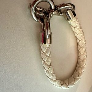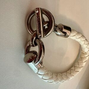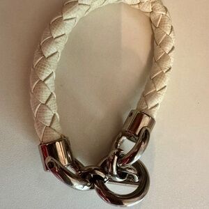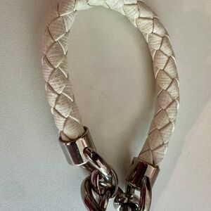 Braided white leather bracelet. Normal signs of wear, but no significant damage.