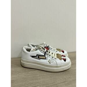 Prada Leather Robot Queen Patchwork Low Top Platform Sneaker White Women's EU 39