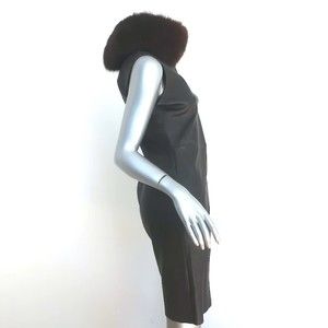 Prada Leather Sheath Dress with Removable Fur Collar Dark Brown Size 44