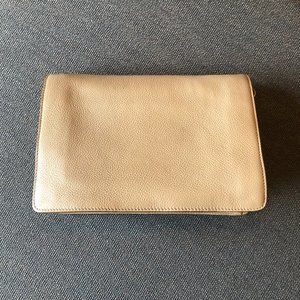 BEIGE VITELLO DAINO DOUBLE STRAP CROSSBODY BAG