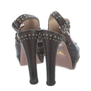 Prada Leather Slingback Platform Pumps with Peep Toe & Studded Accents