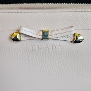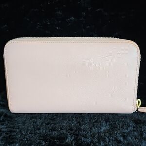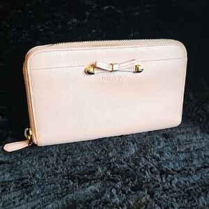 Prada Light Pink Zip Around Wallet with Gold Accents And Bow