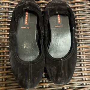 Prada Linea Rosa Ballet Flats Suede Black Size 35.5