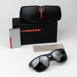 Prada Linea Rossa Men ACTIVE Sunglasses Grey Rubber Mirror Black Square PS01US UFK5L0 BRAND NEW 59mm