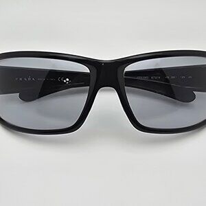 This listing is for authentic Prada Linea Rossa SPS 08G 1AB-3M1 Gloss Black Frame Light Blue Gradient Lens Unisex Wrap Sunglasses Italy 67-16-125 ULTRA RARE. Sunglasses are in fair pre-owned condition, both lenses have scratches and missing right temple rubber (see photos). Listed price is reflective of item condition. Size: 67-16-125. Made in Italy. Please see pictures to make your complete condition assessment.