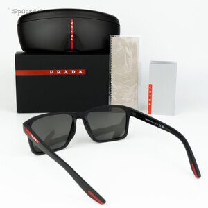 Prada Linea Rossa Women Sunglasses Black Grey Red Rectangle PS05YS 1BO10A NEW