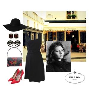 Prada Black cotton dress similar to 2006 spring collection with pattern in white.