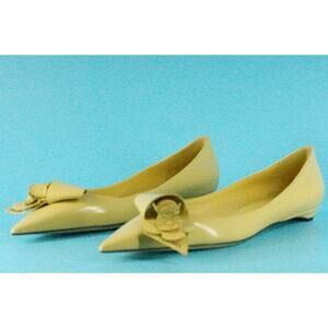 Prada Loop Bouquet Yellow Patent Pointed Toe Flat NIB $1120 Floral