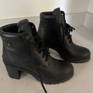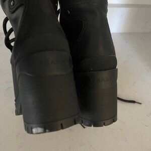 Prada Black Combat Boots. There is a white scuff on the back of one of the heels.