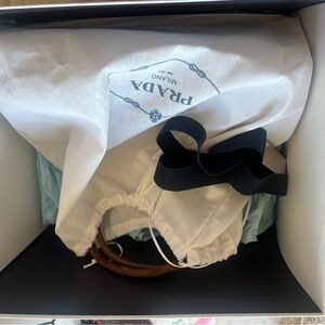 Chic Prada shoulder bag in rich brown suede. Brand new in box.