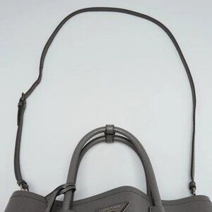 Handles: Double rolled leather handles and single flat, detachable, adjustable leather shoulder strap
