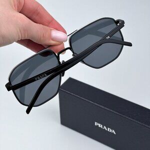 Prada Men BRAND NEW Sunglasses Black Polarized Dark Grey Pilot PR59YS 1AB5Z1
