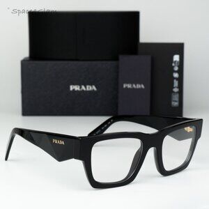 Prada Men Eyeglasses Black Clear Square PRA06S 16K08N NEW AUTHENTIC