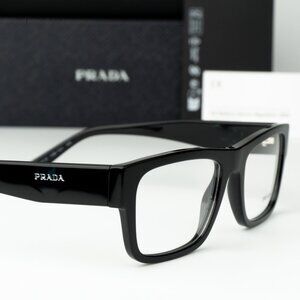 Prada PR15YV 1AB1O1 eyeglasses offer a sleek and professional look with a classic rectangular silhouette in timeless black. Designed for both men and women, these full-rim frames come with demo lenses ready to be customized with your prescription. A perfect blend of everyday practicality and high-end fashion, crafted with Italian precision.