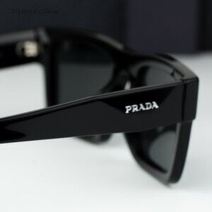 Prada PR19WSF 1AB5S0 sunglasses are a sleek and versatile choice, featuring a bold rectangular acetate frame in classic black with dark grey lenses. Designed for men and women alike, these unisex sunglasses offer a refined full-rim style with Category 3 UV protection. Perfect for everyday wear or polished occasions, they embody the modern elegance of Prada.