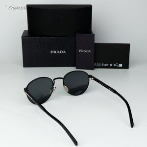 Prada Men Sunglasses Black Polarized Round PRB51S 1AB5Z1 NEW AUTHENTIC