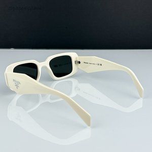 Prada PR17WS 1425S0 sunglasses embody modern elegance with their clean ivory white acetate frame and dark grey lenses. The rectangular shape adds a bold, sophisticated touch, while premium craftsmanship ensures comfort and durability. Designed as a unisex style, they provide full UV protection โ perfect for daily wear or elevating any outfit.